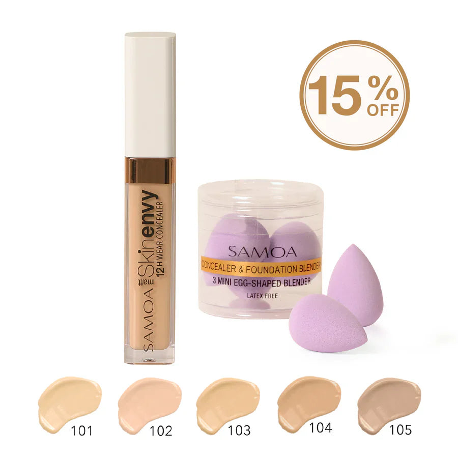 Product form Samoa 15% OFF SkinEnvy Concealer + Set 3 Mini Blender Shade 101 Luminous 102 Natural 103 Banana 104 Universal 105 $10.50 Quantity Add to cart This item is a recurring or deferred purchase. By continuing, I agree to the cancellation policy and authorize you to charge my payment method at the prices, frequency and dates listed on this page until my order is fulfilled or I cancel, if permitted.