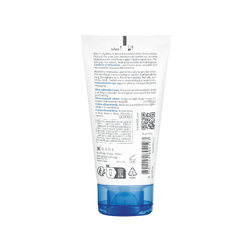 A repairing treatment that intensely nourishes damaged hands A real regenerating and nourishing "glove": it regenerates even the most damaged skin and quickly soothes dry and damaged hands prone to dermatological problems (irritating dryness, chapping, cracking, etc.) The rich and creamy texture offers an instant and lasting sensation of wellness