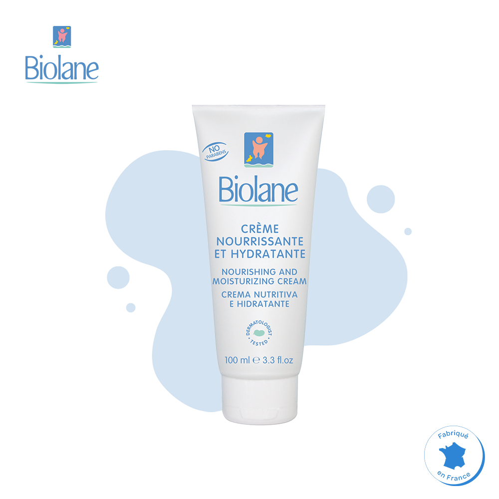 Its formula, with phospholipids and Provitamin B5, promotes regeneration of the skin. Rich in amino acids and minerals, it helps reduce redness and irritation. Its complex of nourishing, moisturizing* active ingredients helps the epidermis to regain its softness, suppleness and comfort. Smooth and with a delicate fragrance, Biolane Nourishing and Moisturizing Cream is easy to apply and penetrates instantly.