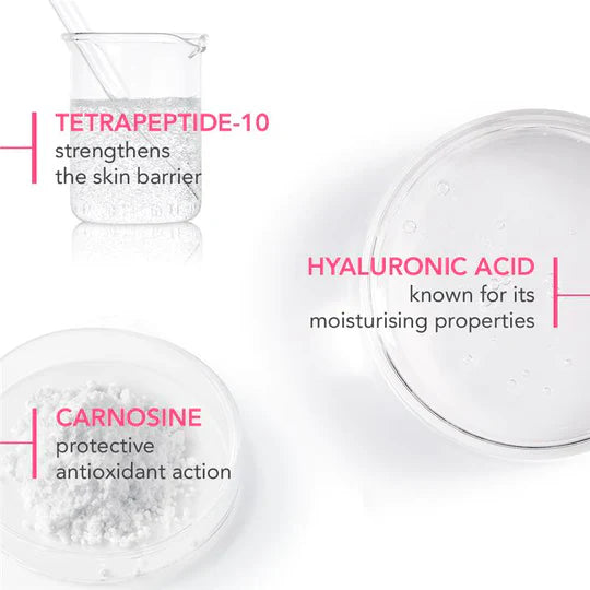 On one hand, this serum lastingly hydrates the skin thanks to the presence of Hyaluronic acid which also has a plumping effect, reducing the appearance of fine lines and wrinkles. On the other hand, the formula protects, soothes, and strengthens the skin barrier. In this way, it is more than adequate for sensitive skin and even suitable to use before and after esthetical procedures. With a fresh and light texture, this serum immediately soothes and comforts the skin. Day after day, it reduces fine lines and wrinkles and the skin becomes more luminous. All in all, this serum protects sensitive skin and prevents skin aging at the same time.