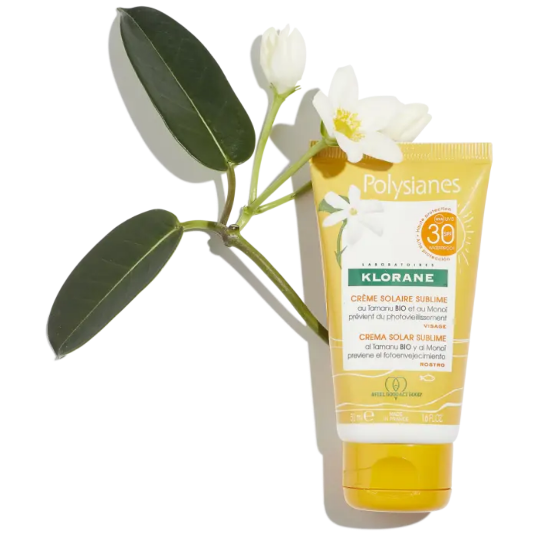 Inspired by Polynesian skincare rituals, the Face sunscreen draws its benefits from 2 natural active ingredients: Organic Tamanu and Monoï. Thanks to sun filters that protect against UV rays and prevent skin photoaging, your epidermis is protected and is enhanced by illuminating pigments. Protected, the epidermis is sublimated by illuminating pigments. Sublime Face Sun Cream is suitable for all skin types. Available in SPF 30 and SPF 50+.