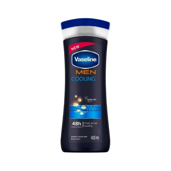 Vaseline MEN Cooling Body Lotion is tailor-made for men's skin care, to provide real moisturising for tough, dry skin. Light, fast absorbing moisturising lotion with a non-greasy feel Don't suffer dry, itchy skin. Use Vaseline MEN Cooling Body Lotion as part of your daily grooming routine Calms and soothes dry, irritated skin leaving your skin feeling cool and smooth.
