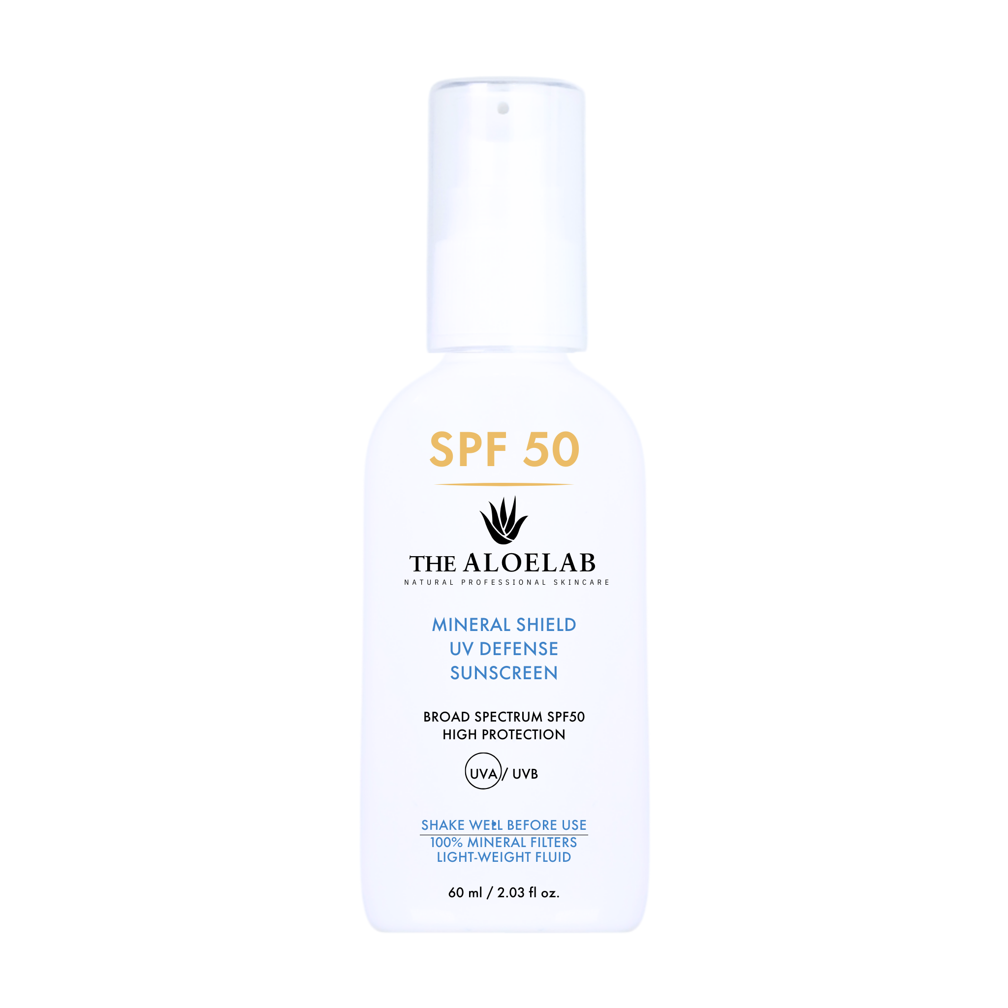 100% mineral-based fluid sunscreen that provides broad spectrum SPF 50 UVA/ UVB protection.