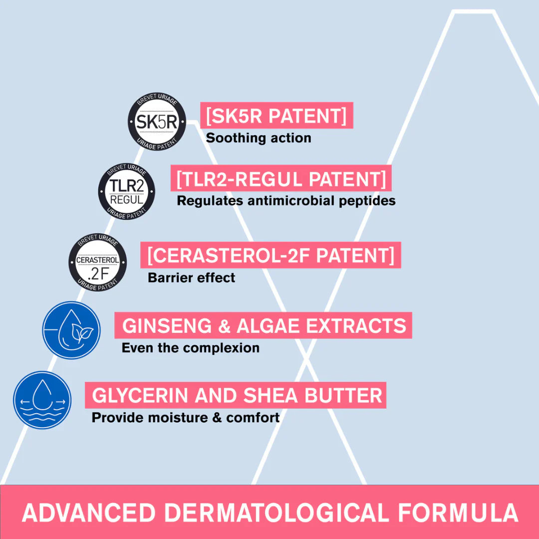 Rich in Uriage Thermal Water with moisturizing and soothing properties, and in Cerasterol-2F that durably restructures the cutaneous barrier, this cream hydrates and provides immediate and long-lasting skin comfort.