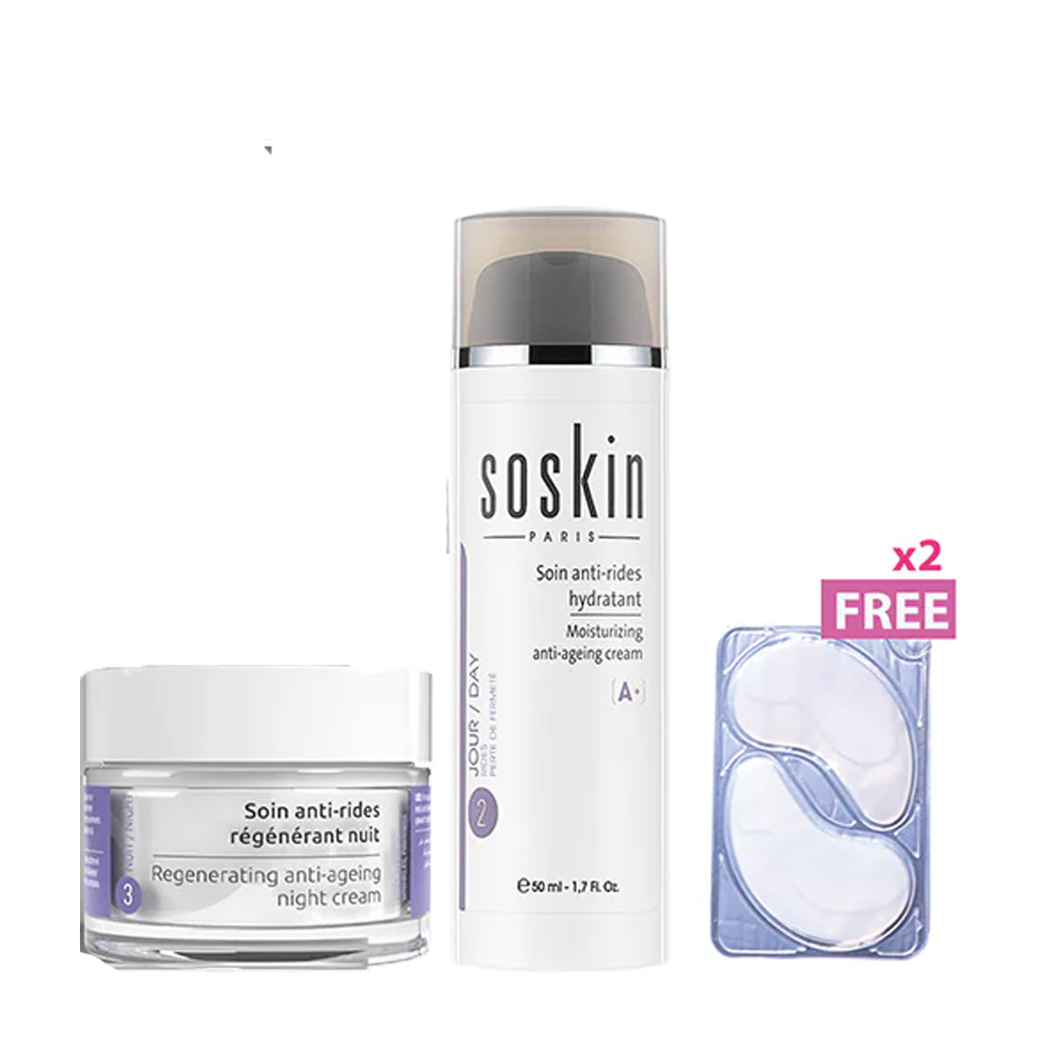 Soskin Moisturizing Anti-aging Night Cream + Soskin Moisturizing Anti Aging Day Cream + Soskin Eye Patches (Gift)