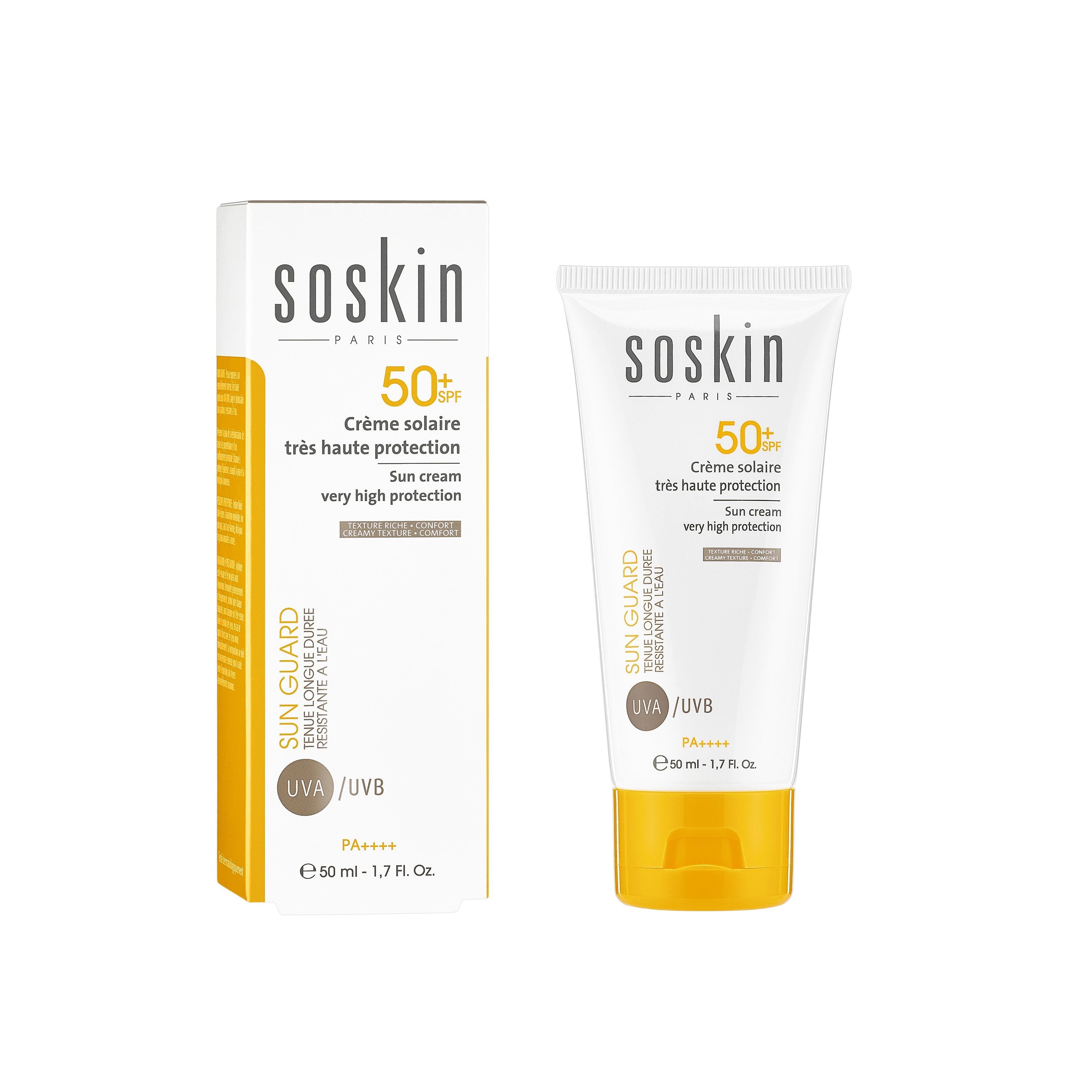 Soskin Sunscreen Cream SPF 50+ is for Dry and Sensitive Skin.
