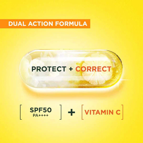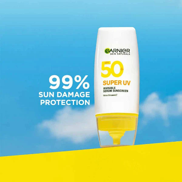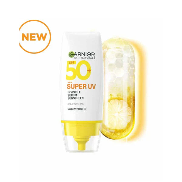 Garnier Super UV Invisible Serum Sunscreen SPF 50+ is your daily defense against sun damage. Enriched with antioxidant Vitamin C, it helps brighten skin and prevent the formation of sun-spots. Its Air-Lock Technology ensures the formula locks onto skin like a second layer - light as air, invisible, and non-sticky, with no white cast. Offering high protection with SPF 50+ and PA++++, it shields against both UVA and UVB rays to prevent burning, dark spots, and premature aging. The lightweight serum texture blends seamlessly into your skincare or makeup routine, leaving skin smooth, fresh, and perfectly protected all day long.