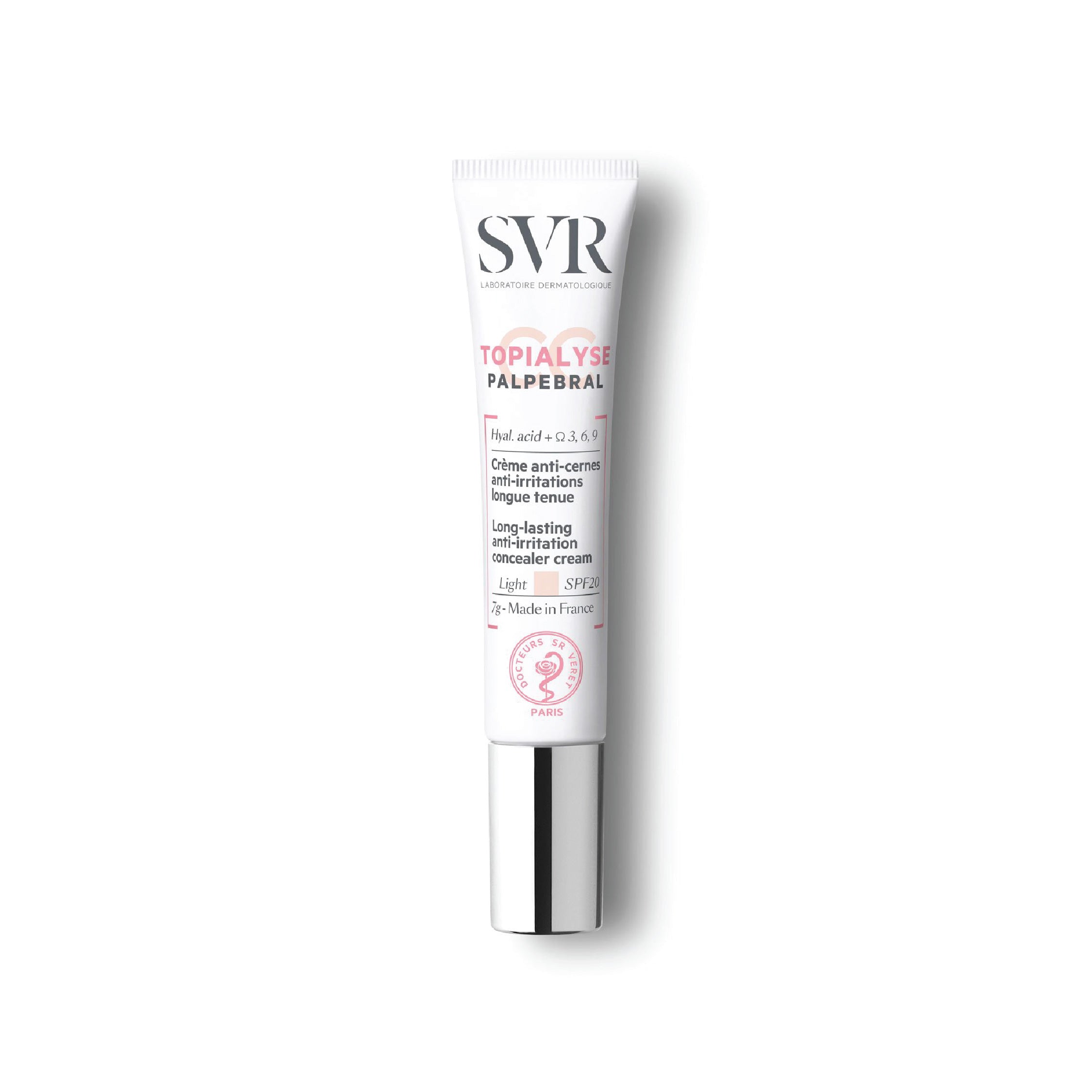 Apply SVR Topialyse Palpebral CC Light Tone SPF20 to undereye circles & dark areas to conceal dark circles or apply all over the eye contour, including the eyelids to camouflage redness and soothe irritated eyes.