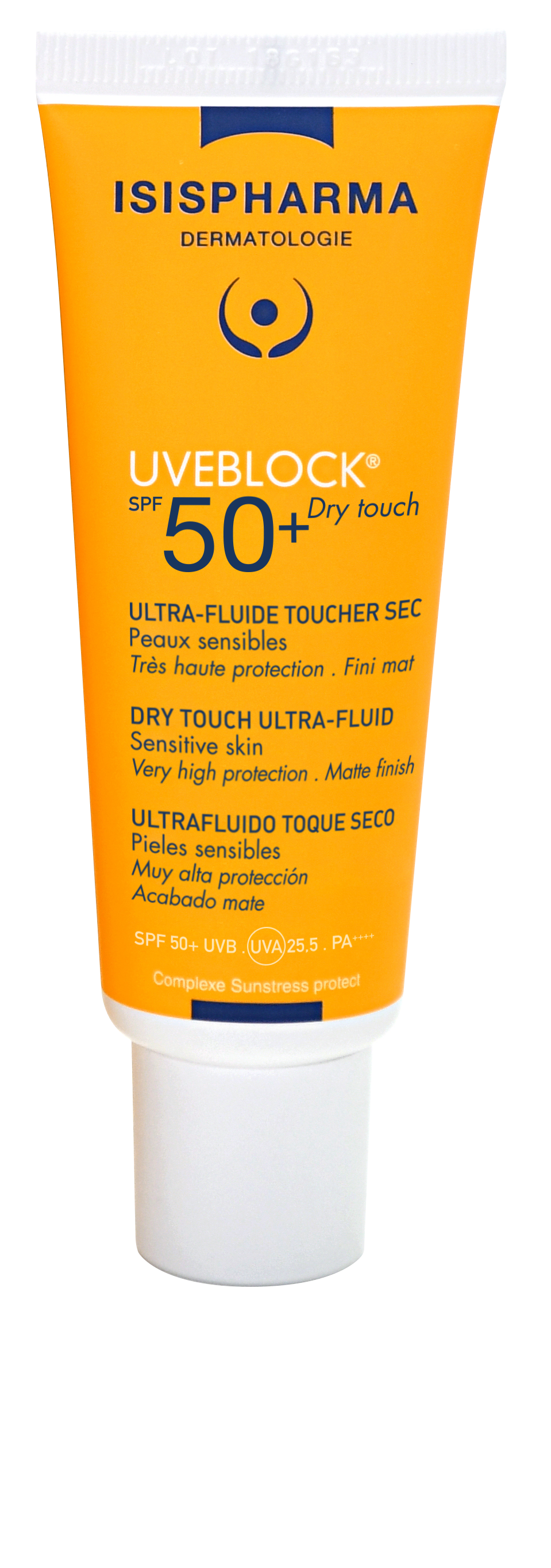 UVEBLOCK DRY TOUCH SPF50+ is a sunscreen that provides very high protection, suitable for oily skin. Protection against damage caused by UVB, IR and UVA. The texture of the Uveblock dry touch screen provides a mattifying effect. In addition, its texture is ultra fluid for easy application. UVEBLOCK DRY TOUCH SPF50+ is 100% safe, paraben free, phenoxyethanol free, silicone free, fragrance free and alcohol free. Hypoallergenic and non-comedogenic.
