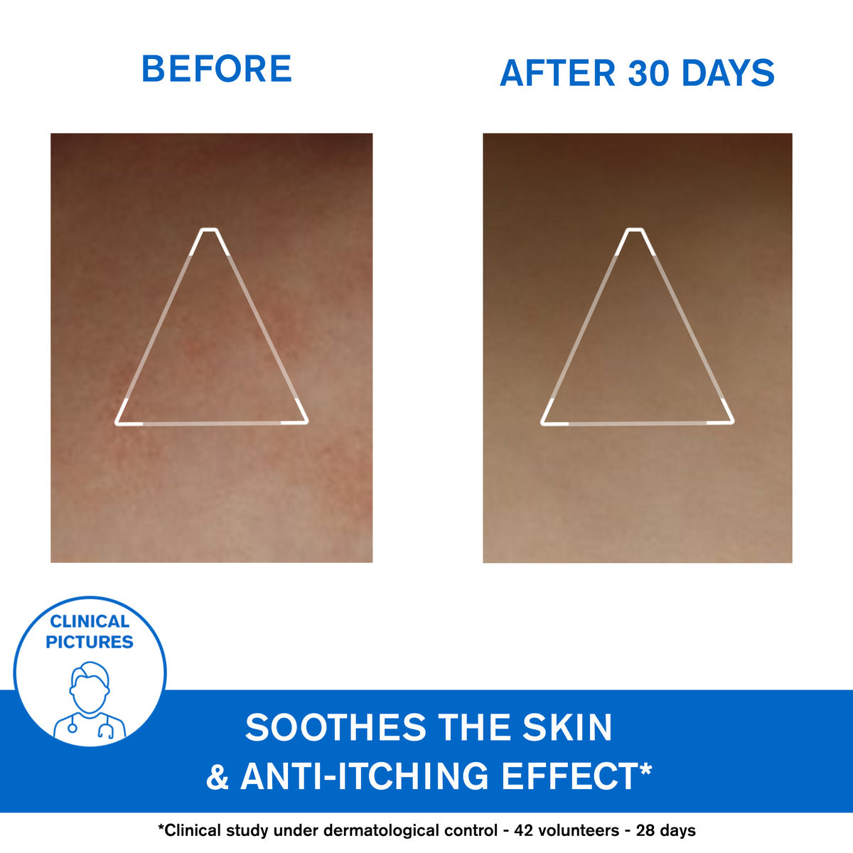 It has a triple barrier action for long-lasting relief: Cerasterol 2F restores and reinforces the skin barrier, the TLR2-Regul regulates the innate immune barrier and Uriage Thermal Water re-balances the microbial barrier.